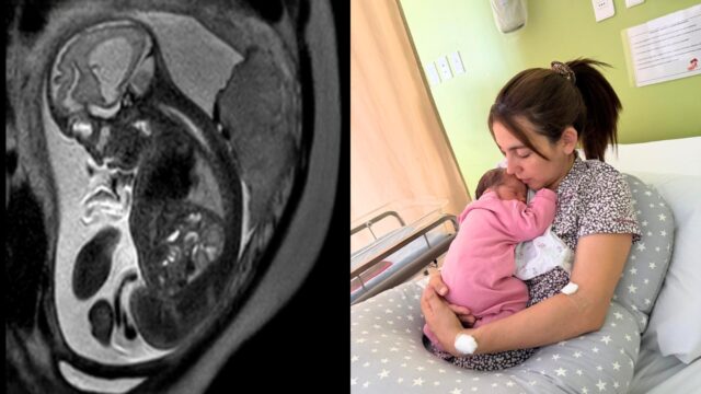 “Saber a tiempo nos permitió actuar con calma y tomar decisiones”, relató Alejandra Villeuta Sepúlveda, quien con 36 semanas de embarazo fue derivada al HRÑ para realizarse una resonancia magnética. El examen se indicó para descartar una posible hemorragia fetal, lo que finalmente permitió detectar una ventriculomegalia, información clave para definir un plan médico y asegurar una atención oportuna para su hija.