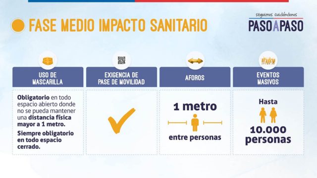 Desde las 5 de la madrugada de HOY, nueve comunas de Ñuble entraron a la fase de medio impacto sanitario del Plan Paso a Paso, que dentro de sus cambios considera la reducción el aforo de eventos masivos a un máximo 10 mil personas y también exige una distancia mínima de un metro entre personas.