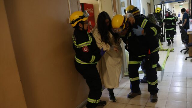 La emergencia se produjo en el tercer piso del Establecimiento, requiriendo la presencia de Bomberos y otras entidades externas. El ejercicio se extendió por 45 minutos.